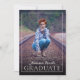 Cette invitation à la fête de remise de diplômes comprend deux photos, une photo de fond plein vertical à l'avant et une photo horizontale à l'arrière. L'arrière offre du texte personnalisé pour les détails de votre fête.