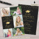 Invitation Diplômé de Collage Photo Noir Or Élégant