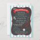 Invitation de fête super amusante pour la remise des diplômes d'infirmière ou de l'école de médecine avec des bandes audacieuses et un centre de tableau noir avec stéthoscope, bannière et polices de craie. Illustration dessinée à la main par McBooboos.