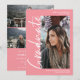 Un cool moderne et simple, blanc et rose script de l'enseignement supérieur à l'ouverture de la remise des diplômes photo. Ajoutez 4 de vos photos préférées avec une police de style brossé moderne et un collage de grille photo.