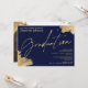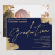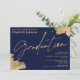 Une invitation de remise de diplôme de paysage élégante et chic avec une calligraphie manuscrite en or avec un trait de pinceau doré sur fond bleu marine. Célébrez le diplômé, ajoutez votre photo. Tout le texte, les noms et les couleurs de fond sont personnalisables. Une invitation simple et minimaliste.