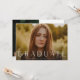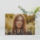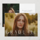 Cette invitation de diplôme de photo élégante et moderne présente une photo horizontale et un titre avec un texte personnalisable sur le devant. Le dos comporte des détails d'invitation et une photo verticale. Cliquez sur le bouton modifier pour personnaliser ce design.