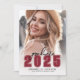 Faire-part de remise de diplôme et invitation à la fête minimaliste classique. Le devant présente une photo pleine page avec un dégradé blanc en bas qui se fond parfaitement dans l'image. Sur le dégradé, « 2026 » apparaît dans une police classique et grasse de style scolaire en rouge ou bordeaux. Au-dessus de l'année, « Graduate » est écrit dans une police cursive, qui peut être changée en « Promotion de » si préféré. En dessous de l'année, le nom du diplômé et le nom de l'école sont présentés avec élégance. Le design actuel utilise des tons noirs et rouges pour un look intemporel et sophistiqué, mais toutes les couleurs peuvent être personnalisées pour correspondre aux couleurs de l'école ou aux préférences personnelles.