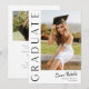 Cette invitation de diplôme de photo élégante et moderne présente une photo verticale et un titre avec un nom et un texte de script personnalisables sur le devant. Le verso comporte une invitation avec les détails de la fête. Un excellent moyen de mettre en valeur votre diplômé. Cliquez sur le bouton modifier pour personnaliser ce design.