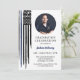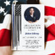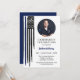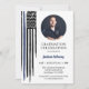 Cette invitation de fête de diplôme unique présente un drapeau de ligne mince bleue à l'aquarelle en détresse avec un design moderne. Cette invitation peut être utilisée pour tout membre du service, car la couleur du drapeau est modifiable ! Ajoutez facilement votre propre photo et personnalisez à votre goût !