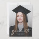 Blanc | Modern Graduate Script Photo Graduation Invitation. Élégante, simple et moderne, cette carte de faire-part de graduation présente un style "gradué" en blanc. Il comprend deux photos et du texte pour personnaliser le nom, l'année de classe et le message de faire-part.