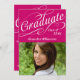 Arrière - plan fuchsia rose vif avec texte tourbillonnant blanc avec "diplômé", et une année personnalisée, idéal pour le diplômé d'annoncer la grande réussite. Célébrez au dos avec le texte personnalisé de l'événement pour vos invités. Tous les dessins © www.CustomInvitesOnline.com