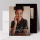Cette annonce de remise de diplômes et invitation à la fête de fin d'études comporte une grande photo sur le devant accompagnée d'un texte moderne "diplômé" et est un excellent moyen de célébrer les réalisations de votre diplômé. Le verso de la carte est un noir chic avec une deuxième photo et un texte qui peut être utilisé pour les détails de la fête, les projets d'avenir, les réalisations et plus encore. Ce design de fin d'études élégant convient aussi bien aux diplômés du lycée qu'aux diplômés de l'université, garçons et filles. Découvrez plus de couleurs et de styles dans la collection de Lea Delaveris Design. Il est également disponible en téléchargement numérique d'annonce de remise de diplômes.