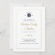 Une invitation à la fête de remise de diplômes à trois cadres en faux relief pour un diplôme d'études de droit simple mais sophistiqué, intemporel et élégant. Veuillez noter que l'embossage dans les cadres est créé par une image et qu'aucun gaufrage réel n'apparaîtra sur la carte. En haut, une illustration vectorielle stylisée des échelles de justice montre l'année de graduation. Un faux effet or sur les échelles de la justice et dans la couleur de la calligraphie élève cette invitation classique moderne, élégante fête de graduation qui comporte également la typographie marine. Customisez chaque ligne de texte. Marine, blanc et or.