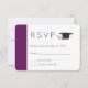 Un RSVP élégant pour une fête / événement de remise de diplômes. Le côté gauche a une bordure royale violette. Un chapeau et un diplôme au sommet. Design simple et moderne.