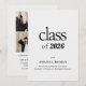 Annoncez votre remise de diplôme avec style et intemporalité grâce à ce faire-part de fin d'études minimaliste blanc. Doté d'une mise en page épurée, d'une typographie sérif moderne et d'une conception de grille de photos pour mettre en valeur vos meilleurs moments de fin d'études. Cette carte double face comprend un faire-part officiel "Promotion 2026" au verso, ainsi que des informations académiques personnalisées. Parfait pour les diplômés du lycée, de l'université ou de l'enseignement supérieur qui préfèrent une esthétique élégante et raffinée.