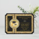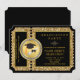 Carton d'invitation au style de billet pour la remise des diplômes noir et or avec diplôme et chapeau de graduation. Cette invitation de fête de remise des diplômes noir et or est facilement personnalisable pour votre événement en ajoutant simplement vos détails d'événement dans le style de police et la couleur, la formulation et la mise en page de votre choix.