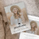 Simple Type 2 Photo Graduation Party Invitation avec fond saigné photo portrait photo et le texte de superposition noir sur le devant. Sur le dos se trouve une photo de paysage avec des détails de fête ou de maison ouverte. Cliquez sur Modifier pour customiser des photos et du texte.