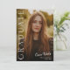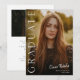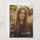 Cette invitation de diplôme photo élégante et moderne présente une photo verticale et un titre avec un nom de script personnalisable et un texte sur le devant. Le verso comporte une invitation avec les détails de la fête. Un excellent moyen de mettre en valeur votre diplômé. Cliquez sur le bouton modifier pour personnaliser ce design.