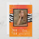 Cartes d'invitation pour la remise de diplôme et/ou la fête de PixDezines 2011 avec impression zèbre et noir et des tourbillons de perles sur fond arlequin orange. Ajoutez simplement une photo de votre diplômé. Copyright © 2010 PixDezines.com et PixDezines sur zazzle.com