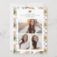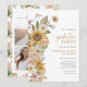 Carton d'invitation pour la remise de diplômes Tournesol. Célébrez votre étape importante avec style grâce à ce magnifique carton d'invitation pour une fête de remise de diplômes, orné d'un bouquet latéral peint à la main saisissant de fleurs sauvages roses et bleues poussiéreuses avec des tournesols jaunes rustiques. L'élégante écriture dorée ajoute une touche raffinée, complétant joliment le motif floral. Au dos, un collage de 3 photos vous permet de mettre en valeur vos souvenirs préférés, encadrés par un motif aquarelle coordonné pour un look cohérent et soigné. Définissez le ton parfait pour la célébration de la remise de diplômes de votre lycéen ou de votre étudiant en fin d'études supérieures — créez un souvenir aussi unique que votre parcours !