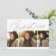 Cette faire-part et cette invitation de trois diplômes en photo est la meilleure façon de célébrer votre diplômé. Avec un script moderne et élégant "diplômé" en marine et souligné, ce design dispose également de la place pour la personnalisation, y compris le nom, l'école et l'année. L'arrière est un bleu marine assorti avec un motif de tiret subtil pour correspondre au soulignement sur l'avant et comprend de la place pour le texte d'invitation de la fête de graduation. Ce faire-part élégant de baccalauréat bleu marine fonctionne bien pour un diplômé du secondaire ou un diplômé du collège. Autres couleurs et styles disponibles dans la collection.