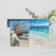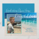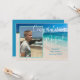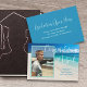 Annonce de diplôme avec photo et texte personnalisé. Ajoutez une photo verticale à l'avant sur une image de fond de plage tropicale. Grand script blanc "Félicitations Nom". Ajoutez plus de texte pour le nom de l'école et la promotion de l'année. Au dos, personnalisez pour une célébration avec du texte blanc sur fond bleu mer. Modifiez et supprimez le texte selon les besoins.