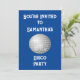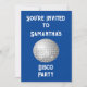 Disco Party Retro Invitation Amusante Anniversaire - N'Importe Quel Âge. Pour Lui. Peut Être Customisé. Bleu et Argent avec texte Vintage. Drôle Bokeh Parties scintillant Disco Ball Thème. Idéal pour les Anniversaires, les Anniversaires et les Diplômes.