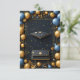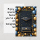 Un étalage luxueux comportant des objets noirs entourés de ballons dorés et bleus festifs avec des confettis. Parfait pour les célébrations, les événements ou pour afficher la sophistication.