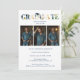 This law graduation invitation features a distinguished navy blue design that conveys elegance and academic prestige. The focal point is the word Graduate presented in a modern multicolor faux gold effect, adding visual interest and a refined finish. The design incorporates a graduation cap and the scales of justice, symbolic elements representing law and the professional path of lawyers. The layout is structured with a balanced three-photo composition, allowing you to highlight meaningful moments while creating a harmonious and visually engaging piece that celebrates a significant academic milestone with style and personality.