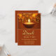 Diwali design avec un diya et feux d'artifice sur un arrière - plan orange brûlé.