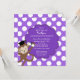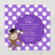 L'obtention du diplôme tellement très mignonne de jardin d'enfants comportant un petit singe adorable dans un casquette tenant un diplôme a placé sur un arrière - plan pourpre et blanc de point de polka. Personnalisez avec votre information de partie et vous êtes tous placez pour aller ! En assortissant merci des notes, des autocollants et affranchissement disponibles dans notre magasin au studio de ©Cocoa de www.celebrateitinvites.com