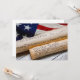 Copies de la Déclaration d'indépendance et de la Constitution américaine en rouleaux avec un drapeau américain vintage