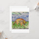 Greeting card with an image of a hand painted dog carrying a rock on it.