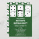 Créez une invitation personnalisée pour les fêtes d'anniversaire et d'autres événements spéciaux. Cet invitation présente des illustrations simples dessinées à la main de dominos blancs avec des points noirs dressés contre un arrière - plan vert. Tous les détails de votre fête apparaissent en gras blanc en dessous des graphiques.
