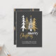 Carte à plat de Noël de l'entreprise élégante, faite en gris, avec des dessins de doodle d'arbres de Noël blanc et or, au sommet. Personnalisez le texte pour lire ce que vous voulez. Grande carte de voeux de vacances d'entreprise que les employés apprécieront.