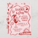 Célébrez dans le style avec cette invitation de week-end de bachelorette sur le thème de Las Vegas «Lucky in Love», un design fantaisiste et audacieux qui capture l'excitation de la dernière célébration d'une mariée avant le mariage. Sur un fond rose doux, l'invitation présente des gribouillis rouges ludiques d'une showgirl dans un verre à cocktail et diverses icônes sur le thème de Vegas - qui évoquent tous le glamour et l'énergie d'une escapade à Vegas. Le texte entièrement personnalisable vous permet d'ajouter le nom de la mariée, les dates, la destination, l'itinéraire, la réponse et d'autres détails, ce qui le rend parfait pour l'envoyer aux amis et à la famille à travers la ville ou dans le monde entier. Utilisez-le comme un souvenir imprimé ou une invitation numérique pour donner le ton à un week-end glamour plein de plaisir. Idéal pour les enterrements de vie de jeune fille de destination, les douches de mariage sur le thème du casino ou les itinéraires de week-end, cette invitation garantit que les invités sachent exactement à quel point ils peuvent s'amuser. Que vous