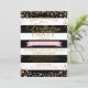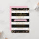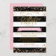 Gras rayure noire et blanche avec parties scintillant rose et or à tossed point le design moderne de la carte d'invitation à la fête d'anniversaire.