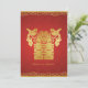 Faire-part de mariage chinois du double bonheur. Avec un thème rouge et or et 2 Inséparables.
