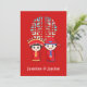 Spécialement conçue pour un mariage chinois, cette carte présente un couple de style kawaii en costume chinois traditionnel. La toile de fond est ornée d'une fenêtre sculptée avec le symbole "Double Bonheur" donnant sur un jardin de cerisiers en fleurs. Le "Double Bonheur" orthographié xi ou "hsi" en mandarin et prononcé "shuang-xi" est un personnage chinois bien connu utilisé traditionnellement en mariage chinois comme symbole d'amour, de bonheur et de chance pour le couple nouvellement marié. L'utilisation de la couleur rouge est une couleur qui est tout aussi bien une couleur populaire dans la culture chinoise, qui symbolise la chance, le bonheur et la joie. Personnalisez vos détails de faire-part de mariage au verso de la carte. Un design qui s'adapte vraiment à toutes les fêtes mariages chinoises.