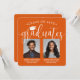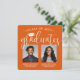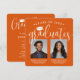 C'est une double fête de remise de diplômes ! Annoncez la réussite de deux diplômés et invitez famille et amis à célébrer avec des invitations photo carrées élégantes pour une fête de remise de diplômes conjointe. Toutes les images et les textes sont simples à personnaliser, et les couleurs peuvent être personnalisées à l'aide de l'outil de conception Zazzle. (CONSEIL DE PLACEMENT D'IMAGE : un moyen facile de positionner une photo exactement comme vous le souhaitez est de la rogner avant de la télécharger sur le site Web de Zazzle.) Ce modèle est une carte d'annonce combinée sur le devant avec l'invitation à la fête de remise de diplômes au verso. Le design moderne orange et blanc présente une calligraphie de style manuscrit avec une casquette de diplômé, une typographie classique élégante et 2 photos de votre choix, telles que des photos de fin d'études ou des images de la cérémonie de remise des diplômes. Cette carte d'invitation à la remise de diplômes est un moyen élégant d'annoncer une