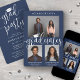 C'est une double fête de graduation ! Annoncez la réussite de deux diplômés et de la famille et des amis invitations à célébrer avec élégante fête de graduation conjointe navy bleu et blanc invitations photo. Les images et le libellé sont simples à personnaliser, et les couleurs peuvent être customisées à l'aide de l'outil de design Zazzle. (CONSEIL EN MATIÈRE DE PLACEMENT D'IMAGE : Une façon simple de positionner une photo exactement comment vous voulez est de la rogner avant de la télécharger sur le site Zazzle.) Ce modèle est une carte de faire-part combinée sur le devant avec l'invitation de la grande fête sur le dos. Le design moderne bleu marine et blanc présente une calligraphie manuscrite avec un casquette en carton de mortier, une typographie classique élégante et trois photos de votre choix, telles que des images de haut niveau ou des images de la cérémonie de début. Cette carte d'invitation à la remise des diplômes est une façon élégante d'annoncer une fête spéciale pour n'importe quel élève de deux niveaux, comme les frères et soeurs, les meilleurs amis, les cousins, les jumeaux, frère et soeur, etc. Félicitations aux deux diplômés !