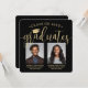 C'est une double fête de graduation ! Annoncez la réussite de deux diplômés et de la famille et des amis invitations à célébrer avec des invitations costumées à la fête de remise de diplômes carrés photo. Toutes les images et le libellé sont simples à personnaliser, et les couleurs peuvent être customisées à l'aide de l'outil de design Zazzle. (CONSEIL EN MATIÈRE DE PLACEMENT D'IMAGE : Une façon simple de positionner une photo exactement comment vous voulez est de la rogner avant de la télécharger sur le site Zazzle.) Ce modèle est une carte de faire-part combinée sur le devant avec l'invitation de la grande fête sur le dos. Le design moderne en noir et or présente une calligraphie manuscrite avec un casquette en carton de mortier, une typographie classique élégante et 2 photos de votre choix, telles que des images de haut niveau ou des images de la cérémonie de début. Veuillez noter que l'or est imprimé en couleur et non en métal. Cette carte d'invitation à la remise des diplômes est une façon élégante d'annoncer une fête spéciale pour n'importe quel élève de deux niveaux, comme les frères et soeurs, les meilleurs amis, les cousins, les jumeaux, frère et soeur, etc. Félicitations aux deux diplômés !