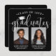 C'est une double fête de graduation ! Annoncez la réussite de deux diplômés et de la famille et des amis invitations à célébrer avec des invitations costumées à la fête de remise de diplômes carrés photo. Toutes les images et le libellé sont simples à personnaliser, et les couleurs peuvent être customisées à l'aide de l'outil de design Zazzle. (CONSEIL EN MATIÈRE DE PLACEMENT D'IMAGE : Une façon simple de positionner une photo exactement comment vous voulez est de la rogner avant de la télécharger sur le site Zazzle.) Ce modèle est une carte de faire-part combinée sur le devant avec l'invitation de la grande fête sur le dos. Le design moderne en noir et blanc présente une calligraphie manuscrite avec un casquette en carton de mortier, une typographie classique élégante et 2 photos de votre choix, telles que des images de haut niveau ou des images de la cérémonie de début. Cette carte d'invitation à la remise des diplômes est une façon élégante d'annoncer une fête spéciale pour n'importe quel élève de deux niveaux, comme les frères et soeurs, les meilleurs amis, les cousins, les jumeaux, frère et soeur, etc. Félicitations aux deux diplômés !