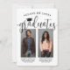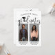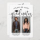 C'est une double fête de graduation ! Annoncez l'accomplissement de deux diplômés et de la famille et des amis invitations à célébrer avec des invitations personnalisées coalisées de remise de diplômes conjoints. Les images et le libellé sont simples à personnaliser, et les couleurs peuvent être changées à l'aide de l'outil de design Zazzle. (CONSEIL EN MATIÈRE DE PLACEMENT D'IMAGE : Une façon simple de positionner une photo exactement comment vous voulez est de la rogner avant de la télécharger sur le site Zazzle.) Ce modèle est une carte de faire-part combinée sur le devant avec l'invitation de la grande fête sur le dos. Le design moderne en noir et blanc présente une calligraphie manuscrite avec un casquette en carton de mortier, une typographie classique élégante et deux photos de votre choix, telles que des images de haut niveau ou des images de la cérémonie de début. Cette carte d'invitation à la remise des diplômes est une façon élégante d'annoncer une fête spéciale pour n'importe quel élève de deux niveaux, comme les frères et soeurs, les meilleurs amis, les cousins, les jumeaux, frère et soeur, etc. Félicitations aux deux diplômés !