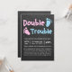 Fêtez le double de la joie avec notre "Double The Trouble Gender Reveal Invitation"! Parfait pour annoncer des jumeaux ou des jumelles, cet invitation sur le thème du tableau noir promet deux fois plus de plaisir et deux fois plus d'excitation. Capturez la magie de ce moment spécial avec une invitation magnifiquement conçue qui prépare le terrain pour votre révélation unique. Que vous soyez l'hôte d'une soirée de révélation de genre ou d'un événement virtuel, nos invitations sont conçues pour impressionner. Commandez maintenant et laissez le compte à rebours à votre révélation inoubliable commencer!