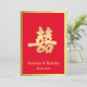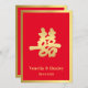 Spécialement conçue pour un mariage chinois, cette carte porte le symbole "Double Bonheur" en calligraphie, "Double Bonheur" orthographié xi ou "Hsi" en mandarin et prononçant "Shuang-xi" est un personnage chinois bien connu, utilisé traditionnellement en mariage chinois comme symbole d'amour, de bonheur et de chance pour le couple marié. L'utilisation de la couleur rouge est une couleur qui est tout aussi bien une couleur populaire dans la culture chinoise, qui symbolise la chance, le bonheur et la joie. Alors que la couleur de l'or symbolise la richesse et la prospérité.