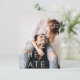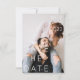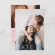 Double photo moderne en gras texte fin enregistrer la carte de date avec un arrière - plan rose moderne propre. Caractéristiques gros et gras texte blanc typographie moderne sur votre propre photo disant "Enregistrer la date" et espace pour vous d'ajouter une autre photo et des détails supplémentaires sur le dos. Parfait pour vous de préparer vos invités à votre événement important.