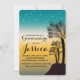 Cartes d'invitation Sweet 16 avec coucher de soleil rose chaud et lumières étoilées Invitations à thème plage de palmiers conçues par Dream Big Digital Design