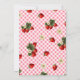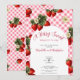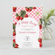 Cette mignonne invitation de fête de bébé "Douce Baie" rouge, rose et verte à thème de fraise avec texte personnalisable est parfaite pour une fête de bébé fille. Elle présente des motifs de fraise rouges et verts sur un fond à carreaux et un texte que vous pouvez personnaliser avec vos propres détails. Le modèle d'invitation est personnalisable dans l'éditeur de liste et est également disponible en téléchargement numérique imprimable après personnalisation.