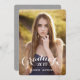 Carte photo parfait invitant votre famille et amis à la fête de remise des diplômes de votre fille. Manuscrit doux | 2015 invitations de fête de remise des diplômes. Conception par le © d'Elke Clarke pour MonogramGallery. Ajoutez votre propres photo et texte. Un rétro recouvrement blanc élégant des textes de police de manuscrit avec diplômé des mots le "2015" est imprimé sur l'avant avec un léger effet gris d'ombre. Ajoutez votre texte d'invitation sur le dos de la carte avec une police blanche moderne sur l'arrière - plan gris-clair d'a (effet imprimé de photo) ou gris vintage de papier d'emballage. D'autres styles et couleurs disponibles.