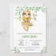 Invitation Douce Fête de Naissance Sloth Garçon avec Feuillag