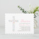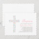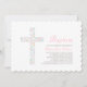 Invitation Douce Fleur Rose Croix Baptême Bébé Fille