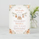 Préparez-vous à célébrer l'arrivée imminente de votre petite citrouille avec notre faire-part de Baby Shower automnal "Petite Citrouille Douce". Cette invitation charmante présente de beaux vêtements de bébé aux couleurs aquarelles orange, crème et beige suspendus à un fil à linge, accompagnés de fleurs et de citrouilles charmantes. Elle capture l'essence de l'automne tout en exprimant la joie de l'arrivée d'un nouveau bébé. Cette invitation est le moyen idéal de définir le ton de votre baby shower sur le thème de l'automne et est disponible en plusieurs couleurs pour répondre à vos préférences. La personnalisation est facile !