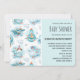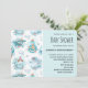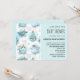 Une invitation d'anniversaire avec un motif fantaisiste présentant des baleines avec des poissons et des phares ainsi que d'autres éléments nautiques.
